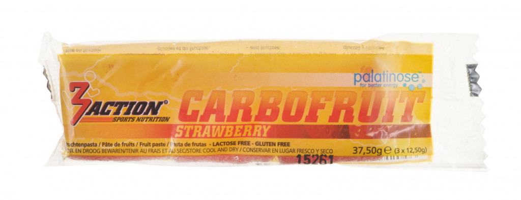 3Action Carbofruit is een unieke vruchtenpasta, speciaal ontworpen om sporters tijdens hun prestaties van extra energie te voorzien. In tegenstelling tot traditionele repen met een hoog gehalte aan vetten, vezels en eiwitten, bevat onze vruchtenpasta geen vet of vezels en heeft een laag eiwitgehalte, wat het risico op maag-darmproblemen vermindert en de maaglediging tijdens het sporten niet vertraagt, waardoor de aanvoer van energie (koolhydraten) niet wordt gehinderd.