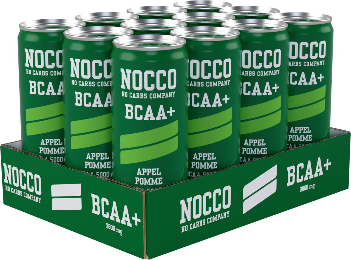 De BCAA drinks van NOCCO bevatten geen suikers en bevatten BCAA’s en vitamines die bijdragen aan het herstel tijdens en na de inspanning de inspanning. De BCAA Drinks bevatten 2500 mg BCAA en 105 gram caffeïne. De BCAA+ Drinks bevatten tweemaal zoveel BCAA, maar geen caffeïne. De perfecte drank voor tijdens of na het sporten!