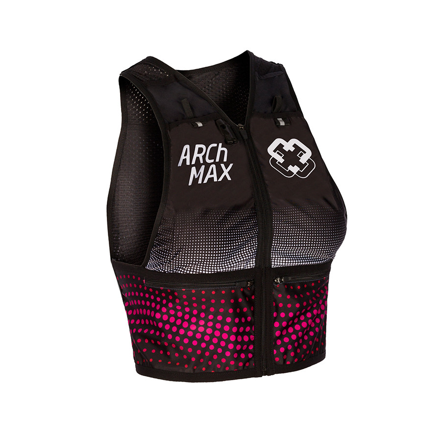 Het ARCh MAX hydratatievest is speciaal ontworpen voor trailrunning. Het ergonomische ontwerp past zich stevig en mauwsluitend aan het lichaam van de hardloper aan, zodat het superfijn zit. De ultralichte stof maakt het een uitzonderlijk comfortabel model voor lange runs. Bovendien zorgt het, omdat het ademend is, voor luchtcirculatie om te voorkomen dat het tussen het vest en het lichaam schuurt.