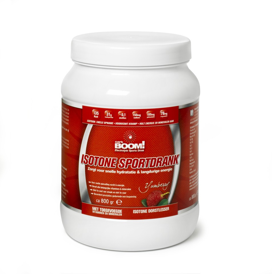 - Koolhydraten: BOOOM bevat een concentratie van Maltodextrine en dextrose (druivensuiker).