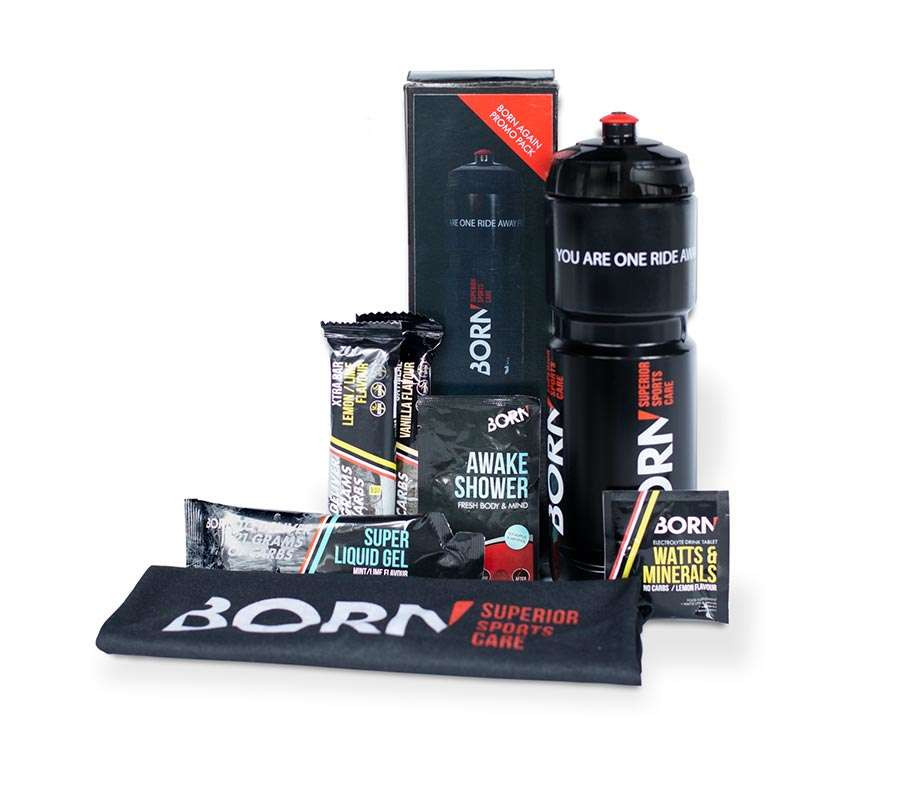 BORN Again Promo Pack is het perfecte sportvoedingspakket voor de beginnende fietser. Hiermee kun je verschillende producten proberen voor een scherpe prijs.