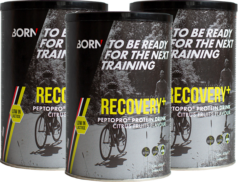 BORN RECOVERY+ is de opvolger van de Born Protein Peptopro Recovery Can. BORN RECOVERY+ is een hersteldrank van hoge kwaliteit. RECOVERY+ bevat een hogere dosis van Peptopro® per portie. PeptoPro® is een mengsel van wetenschappelijk ontwikkelde peptiden (stukjes eiwit) met een zeer effectieve werking en snelle absorptie. BORN RECOVERY+ bevat die aminozuren die nodig zijn voor synthese en herstel van de spiercellen. Hierdoor krijgt je lichaam extra energie. BORN RECOVERY+ wordt geleverd per pot à 440 gram.