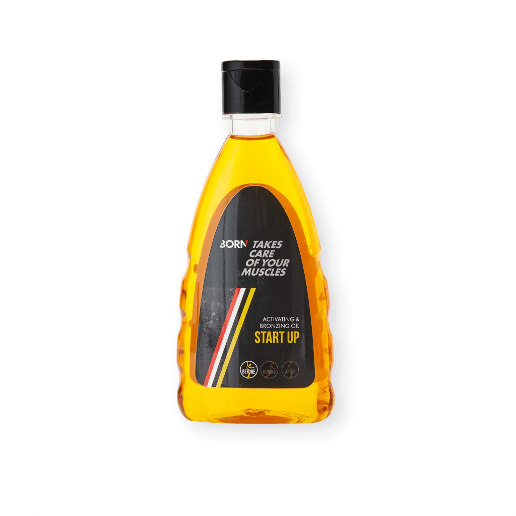 BORN Start Up is een sportolie zonder verwarmend effect die je spieren activeert. Naast het activeren van de spieren, bevat BORN Start Up ook speciaal geselecteerde, hoogwaardige ingrediënten die zorgen voor een optimale doorbloeding van de spieren. Het geeft een mooie bruine kleur aan je benen en accentueert je spieren.