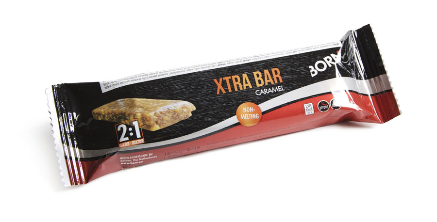 BORN XTRA BAR CARAMEL is een energiereep met een heerlijke smaak van caramel. Deze energiereep heeft de ideale 2:1 glucose/fructose verhouding, waardoor je meer koolhydraten kunt opnemen tijdens inspanning. Deze reep smelt dus niet bij warm weer en door de mix van enkelvoudige en complexe koolhydraten blijf je gaan. BORN XTRA BAR CARAMEL wordt geleverd per reep van 55 gram.