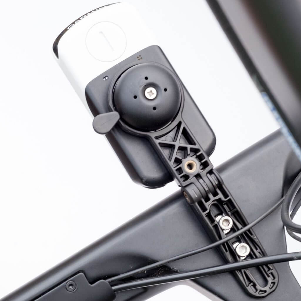 De Close the Gap FI-Mount is discreet de bel valt weg onder de houder van je fietscomputer en deze bevestig je netjes met je aërostuur tot een geheel.