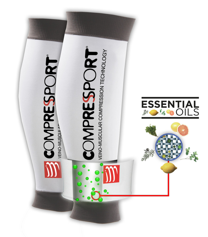COMPRESSPORT® maakt bij de UR2 als eerste fabrikant gebruik van de "micro-encapsulatie" technologie. Miljoenen microcapsules van BIO essentiële oliën zijn in het textiel verweven en geven constant hun actieve ingrediënten af aan uw benen. De afnemende compressie is samen met de ingewerkte essentiële oliën het nieuwe winnende duo voor het welzijn van uw benen.