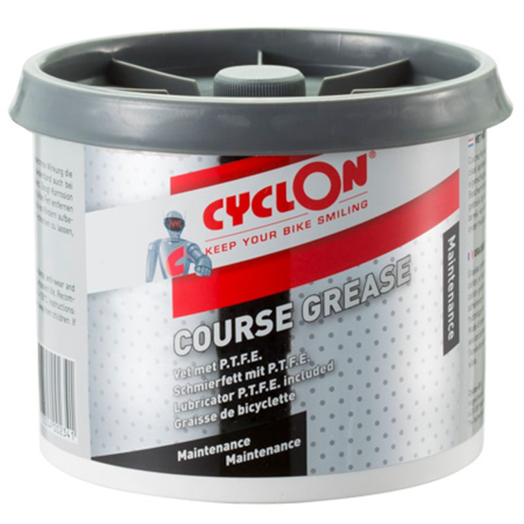 Cyclon Course Grease Lithium houdende vet dat waterbestendig is en slijtage van de materialen voorkomt.