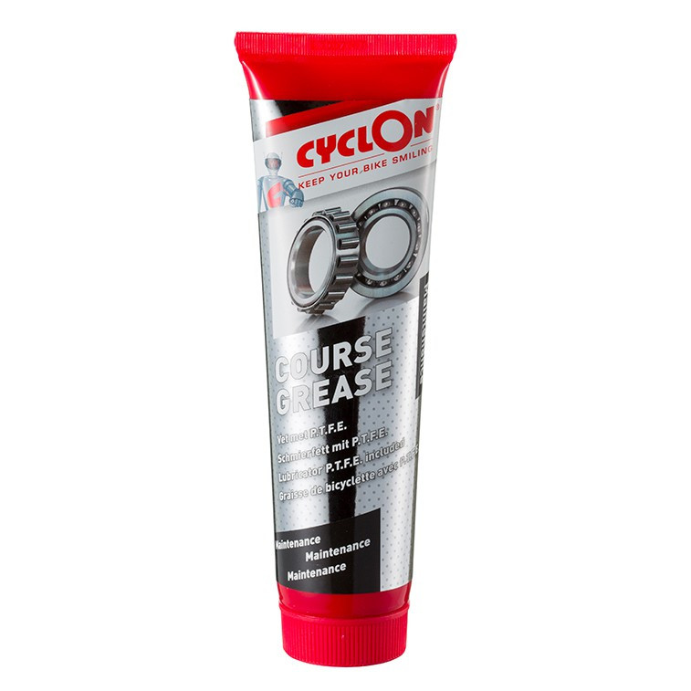 Cyclon Course Grease Lithium houdende vet dat waterbestendig is en slijtage van de materialen voorkomt.