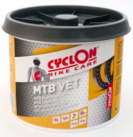 Cyclon ® M.T.B. Vet voor de smering van o.a. lagers, naven en kogellagers van mountainbikes en crossfietsen.