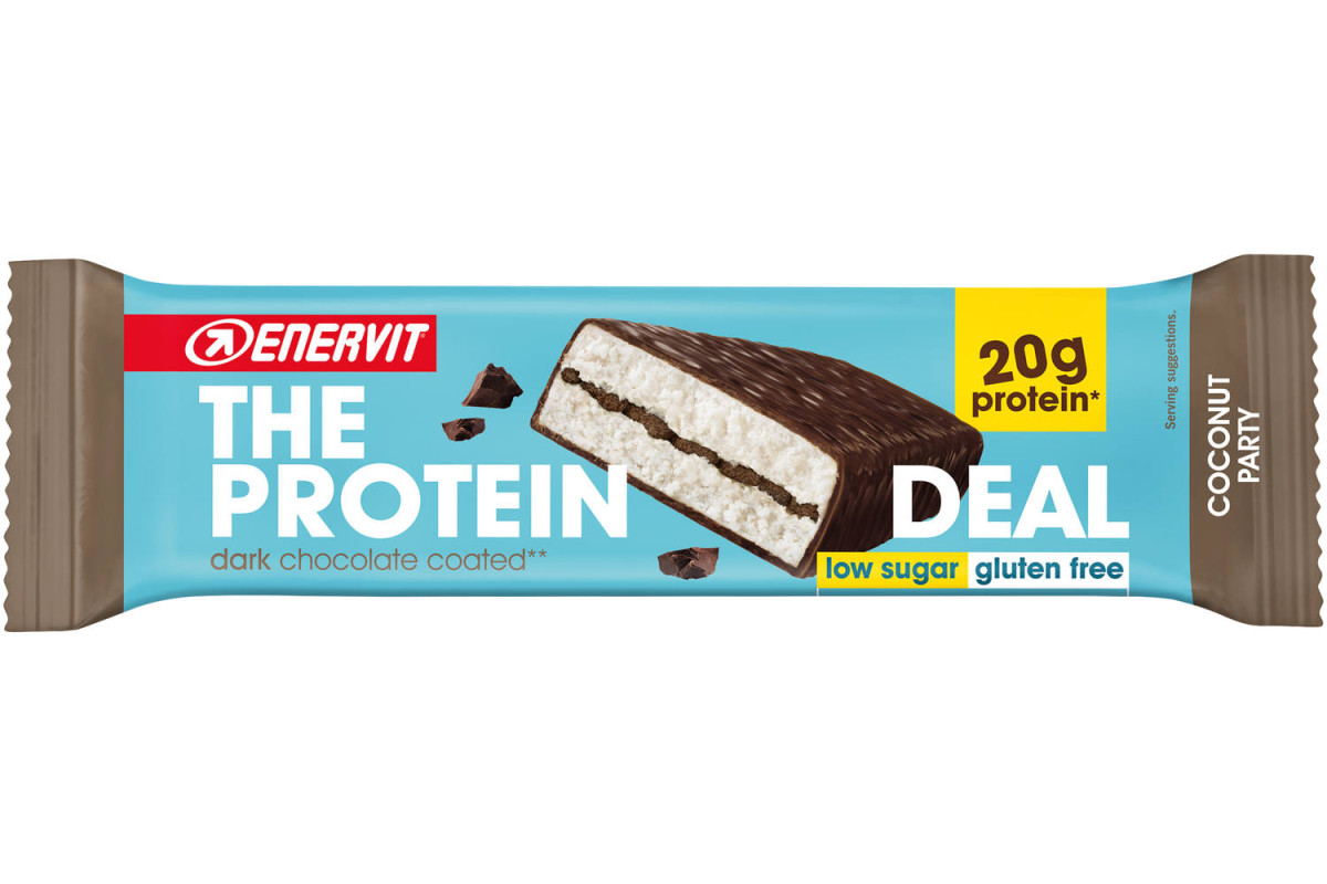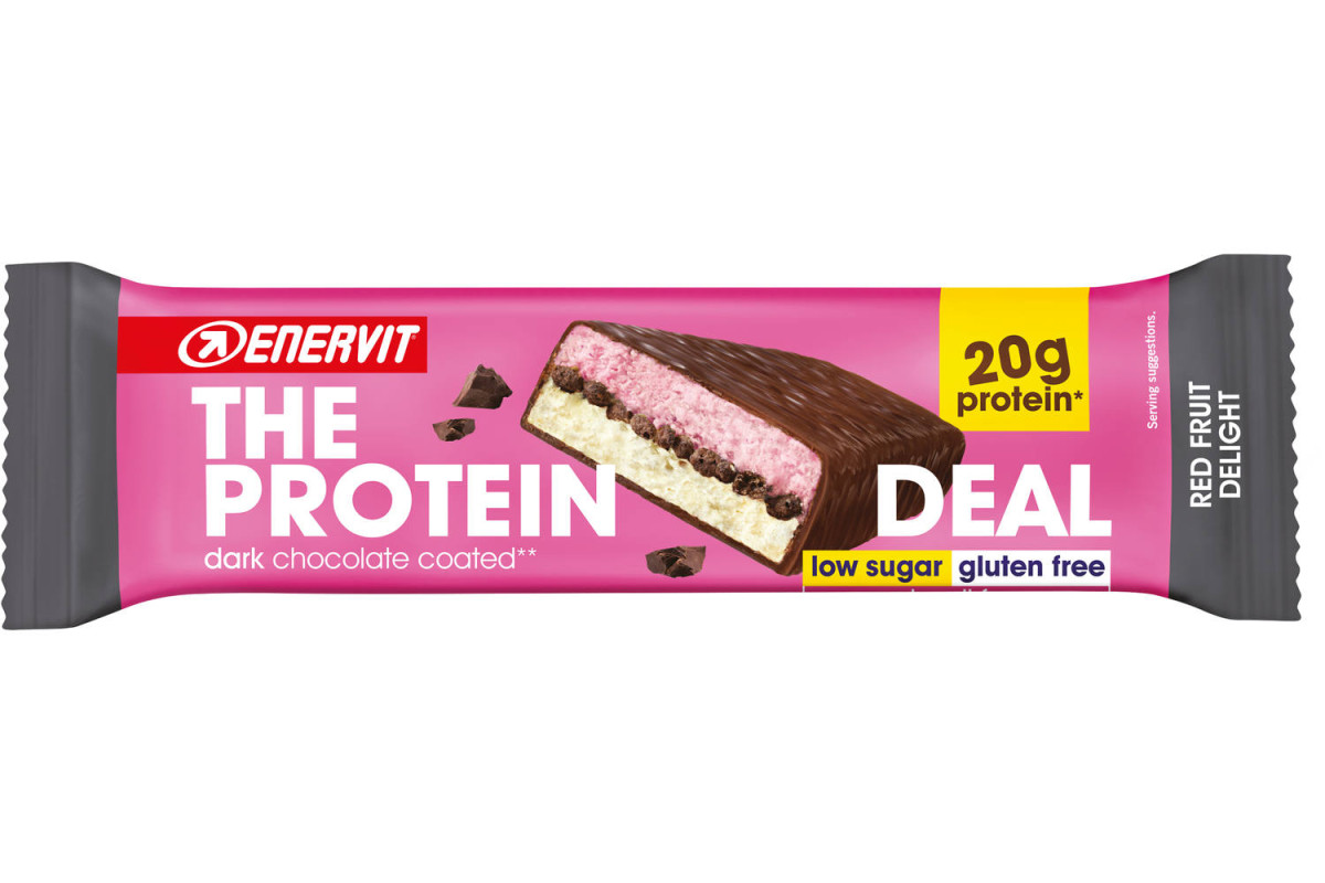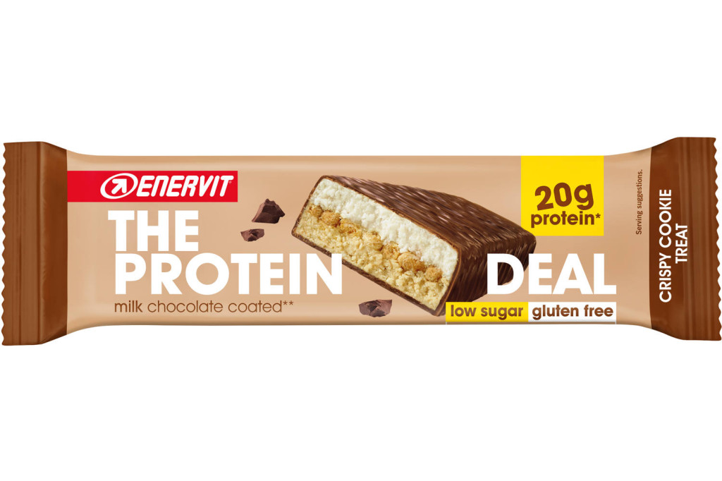 Enervit heeft ook het perfecte tussendoortje voor sporters die dagelijks met hun voedingspatroon bezig zijn: The Protein Deal. Deze heerlijk smakende reep is verkrijgbaar in Choco Vanilla en Crispy Cookie. Uiteraard zijn deze repen niet enkel lekker van smaak, maar ook zeer effectief voor de opbouw en herstel van spiergroepen.