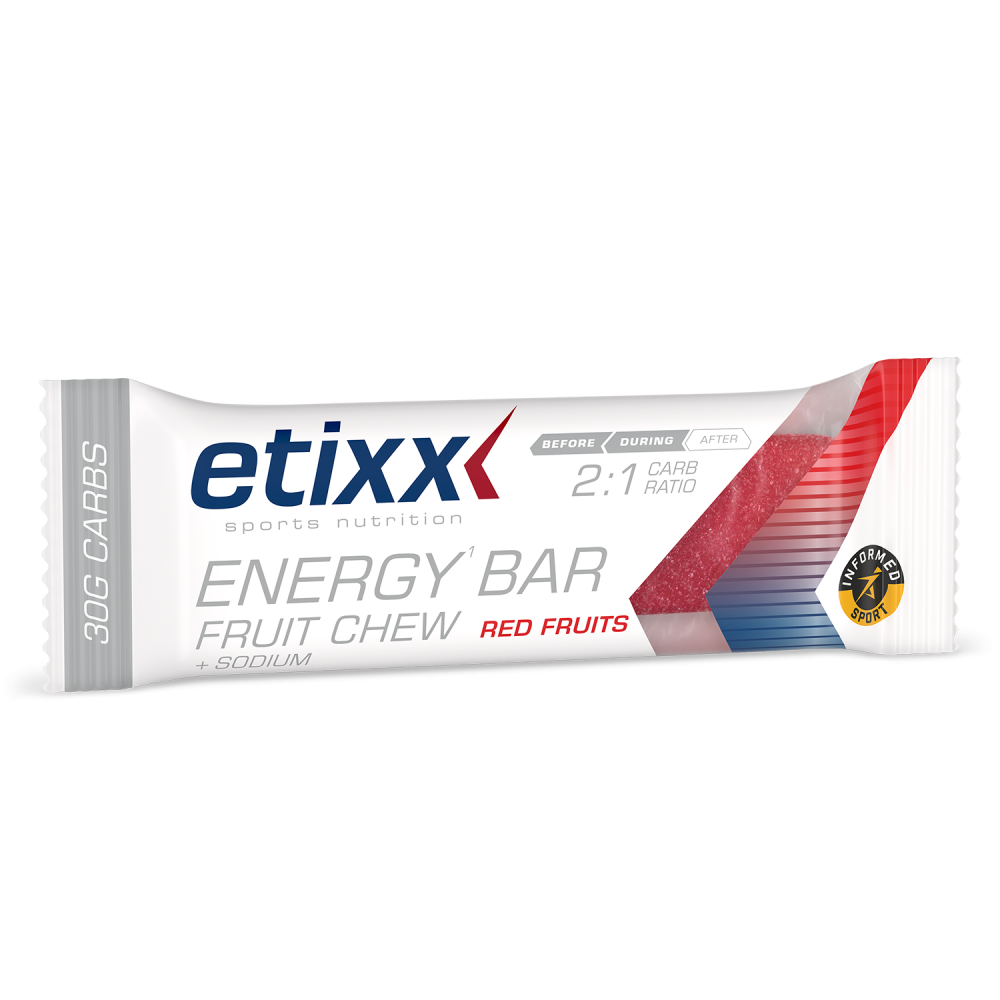De Etixx Energy Bar Fruit Chew is een innovatieve energiebron voor sporters die snel beschikbare koolhydraten nodig hebben tijdens trainingen en wedstrijden. Met 30 g koolhydraten per reep in een optimale 2:1-verhouding (glucose:fructose) ondersteunt deze reep een efficiënte energieopname en helpt het uithoudingsvermogen te behouden.