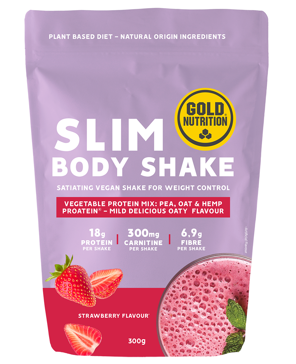 GoldNutrition Slim Body Shake bevat een mix van 3 plantaardige eiwitbronnen (erwt, haver en hennep) die zorgen voor een compleet en gebalanceerd aminozuurprofiel, een hoog vezelgehalte en zelfs 300 mg L-Carnitine per portie. Deze formule verhoogt de verzadiging en verbetert daardoor de controle over het dieet, met minder behoefte aan calorierijk voedsel met minder voedingsstoffen (de zogenaamde "suikerbehoefte"), die het gewichtsbeheer saboteren.