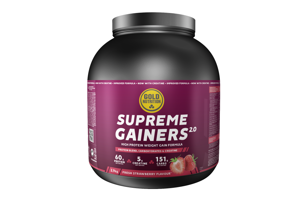 Maltodextrine, Geconcentreerde wei-eiwitten (soja) [18,5%], Magere melk, Fructose, Geïsoleerd soja-eiwit (4%), Verdikkingsmiddelen (guargom), Kaliumbicarbonaat, Middellange-ketentriglyceriden [1,7%], Aardbeiaroma, Calciumcaseïnaat [1%], Zuurteregelaar (natriumdiwaterstoffosfaat), Zetmeel, Kleurstof (poeder van rode bieten en riboflavine), Natriumchloride, Vitamines (D-alfa-tocoferol, Ascorbinezuur, Nicotinamide, Pyridoxine hydrochloride, Methylcobalamine), Zoetstof (sucralose), Zinkcitraat. Vervaardigd in faciliteiten waar gluten, eieren en vis worden verwerkt, dus het kan sporen van deze bevatten.