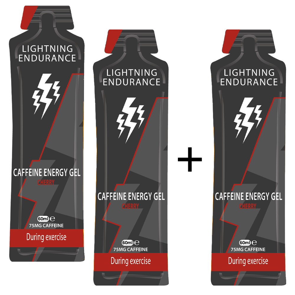 Lightning Endurance Caffeine Energy Gel - Cherry - 60 ml - 10 + 2 gratis (LET OP! THT 16-12-2025) - Drinkgels met caffeïne - Caffeine Gels - Tijdens de inspanning