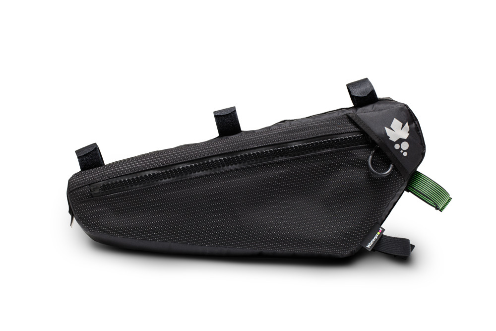 Frametas voor race- en gravelfietsen. Stabiel, ultralicht en waterdicht. Zo ontworpen dat de benen niet gehinderd worden in de beweging (Q-factor) en de bidons niet in de weg zitten. 100% waterdicht. Inhoud: 3 liter