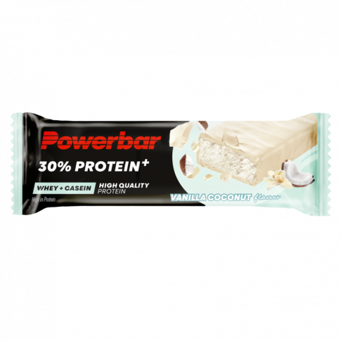 | Powerbar 30% Protein+ Bar Vanilla + Coconut | Per 100g | Per 55g (een reep) |