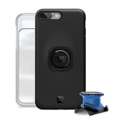 De Quad Lock Fietskit bestaat uit een TPU-case die speciaal is gemaakt voor de iPhone 7 Plus / iPhone 8 Plus. Achterop deze case zit een polycarbonaat aansluiting die past op de fietshouder. Zo kun je de iPhone eenvoudig met hoes en al op de houder klikken.