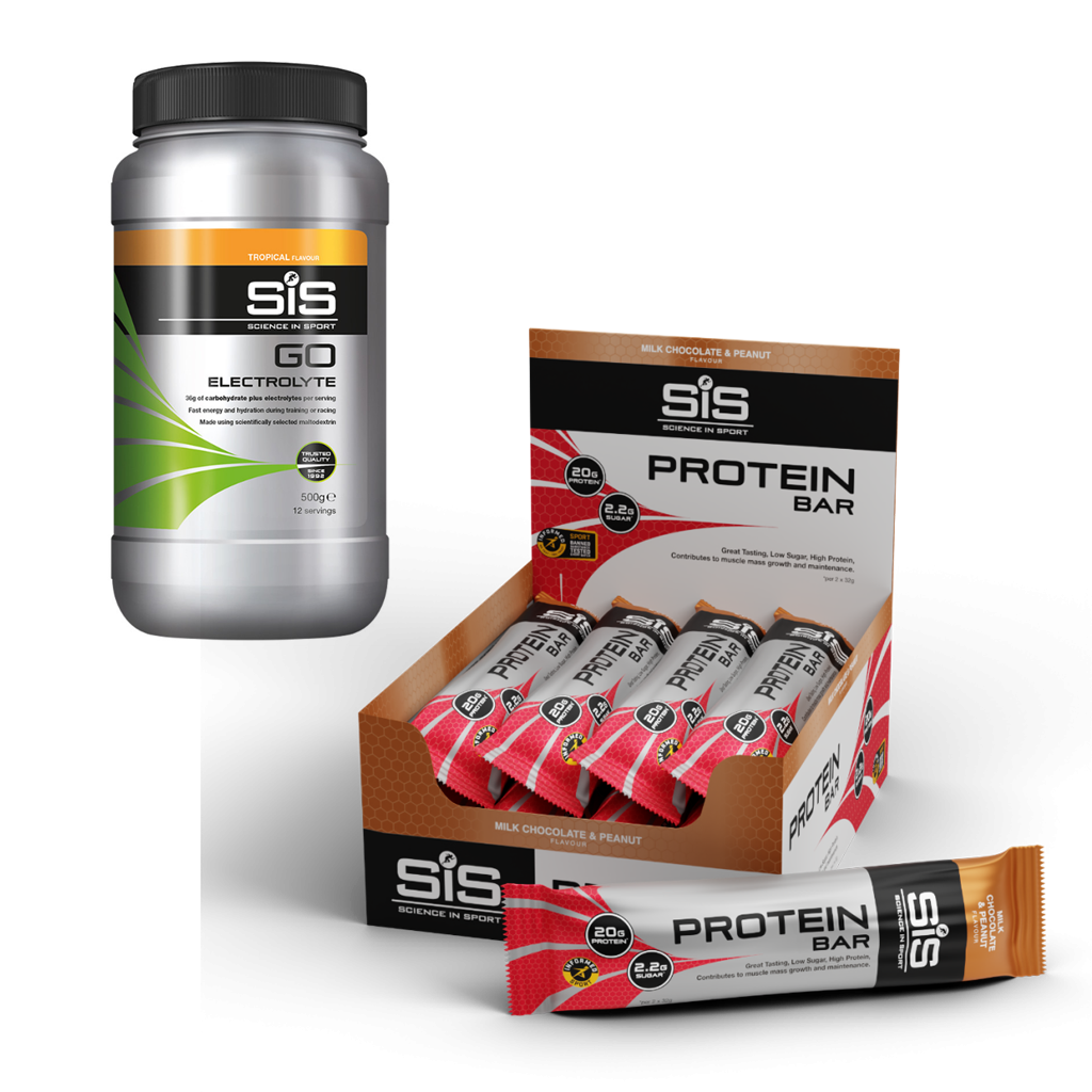 SiS GO Electrolyte - Sportdrank - 500 gram + SiS Protein Bar - 12 x 64 gram (LET OP! MINIMALE THT 30-11-2024)