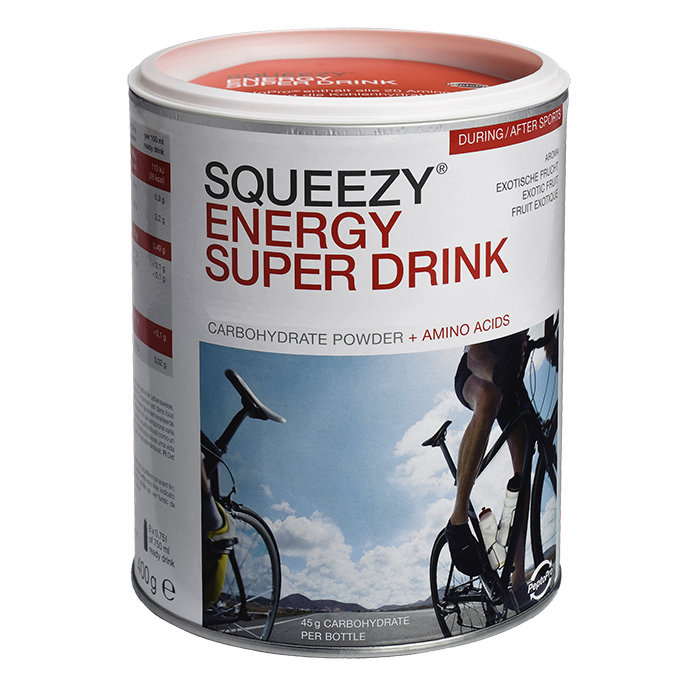 Squeezy Energy Super Drink is voorzien van Peptopro eiwitten. Deze sportdrank geeft net dat extra ten opzichte van de normale Squeezy energy drink. Dit komt mede door de toevoeging van PeptoPro. De sportdrank is gebaseerd op diverse soorten koolhydraten als fructose, glucose en PeptoPro eiwitten. Dit geeft je snel energie en zorgt voor minder spierafbraak tijdens de inspanning. Hierdoor kan je dieper gaan. Tevens is aan het product maltodextrine toegevoegd, dat je voornamelijk energie geeft voor de langere termijn. Dit staat ook wel bekend als snelle en langzame koolhydraten. De toegevoegde natrium en kalium zorgen voor een optimale werking van de sportdrank.