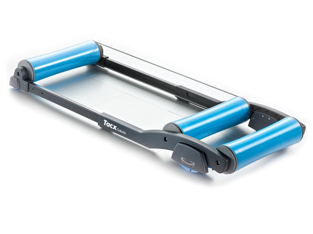 De Galaxia rollenbank van Tacx beweegt met je mee. Je kunt sprintjes maken, de benen strekken en op de pedalen staan zonder dat je bang hoeft te zijn om te vallen. Je bent veel vrijer in je bewegingen, omdat je het natuurlijke fietsgevoel van de weg benadert. Door de kinetische energie die ontstaat bij het versnellen gaat de Galaxia naar voren en bij het vertragen gaat de Galaxia weer naar achteren. Met dit gepatenteerde ‘schommelsysteem’ kun je onbezorgd werken aan je snelheid en souplesse. De Galaxia is inschuifbaar en makkelijk mee te nemen.