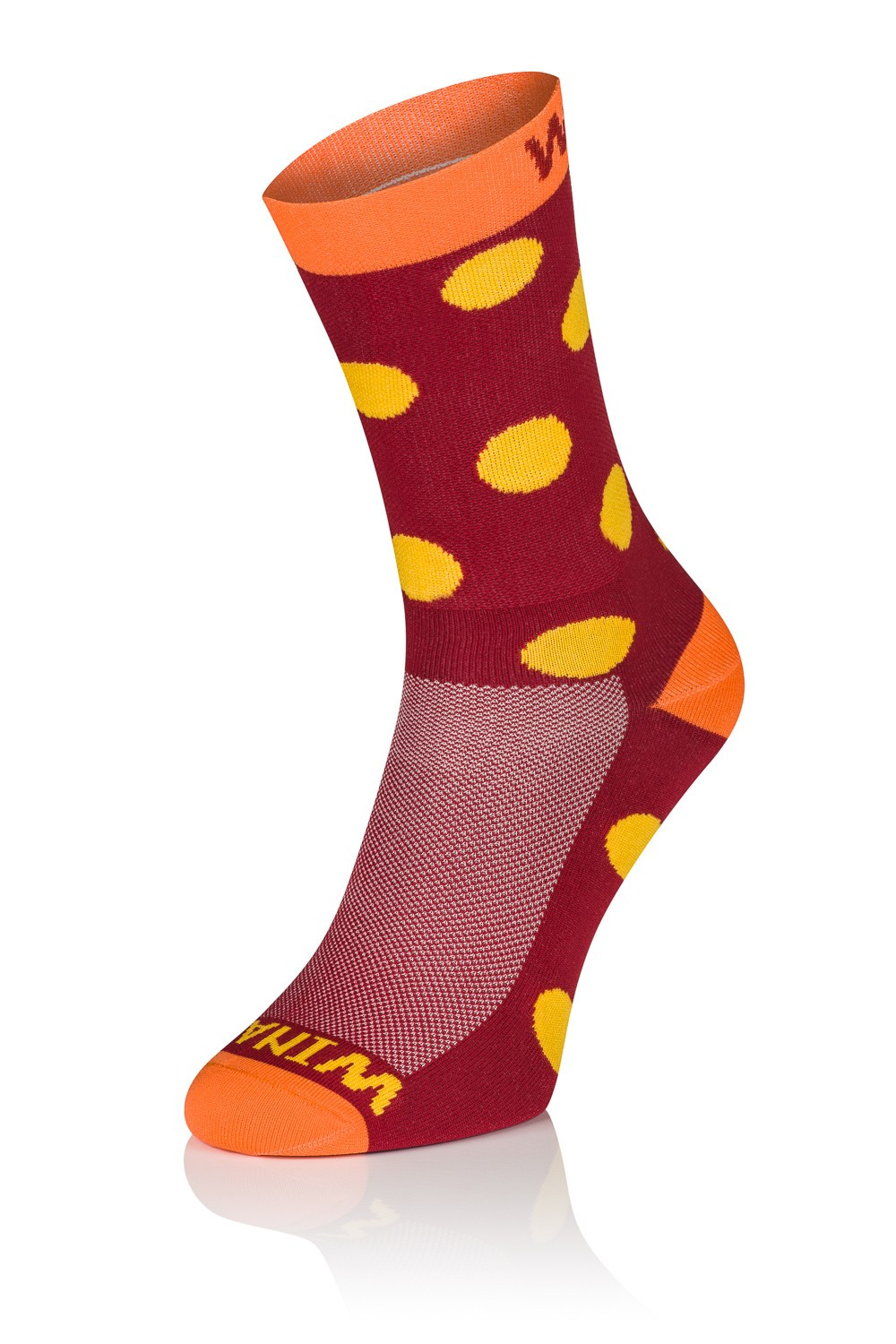 Winaar BO dot - Rood/Oranje Met Gele Stippen - Dots & Stripes - Winaar Socks - Fietssokken - Sokken - Kleding - Accessoires